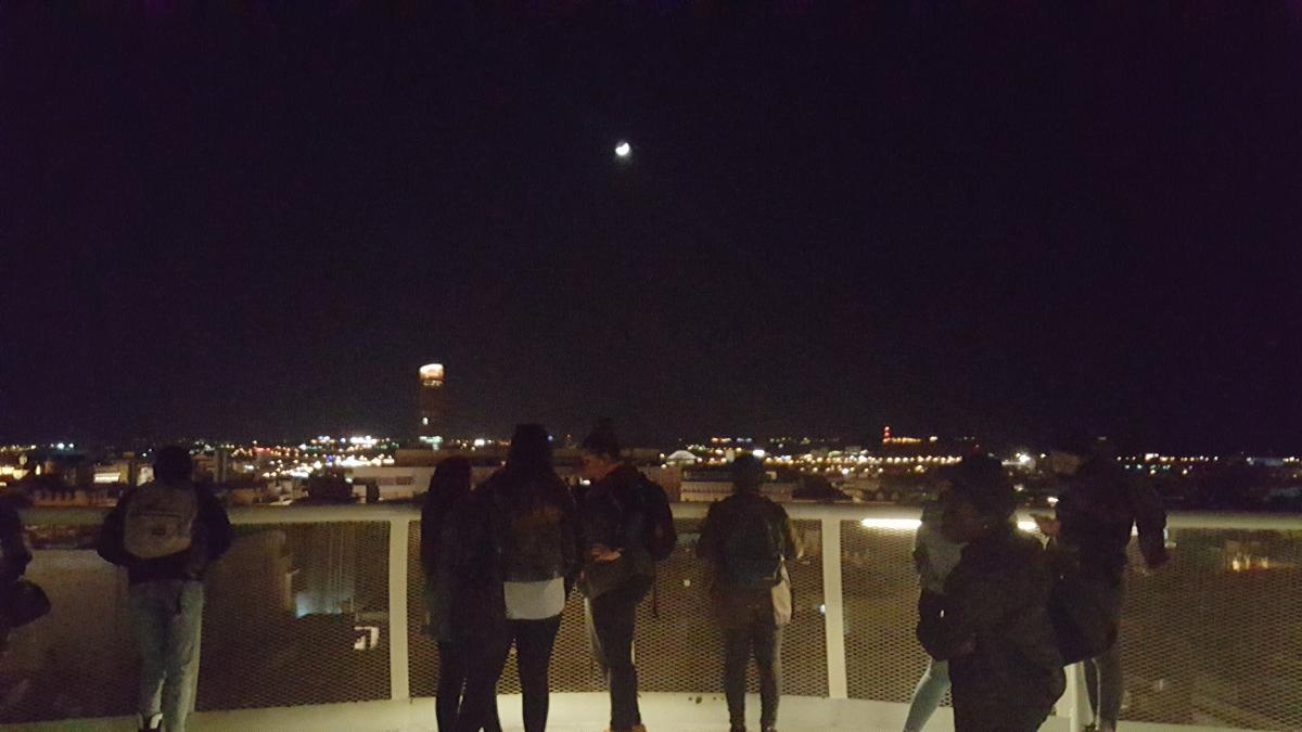 C’est enfin de nuit que le groupe a de nouveau pris de l'altitude, sur la passerelle de la récente Métropole Parasol, avant d'aller déguster une glace au Turon en dessert.